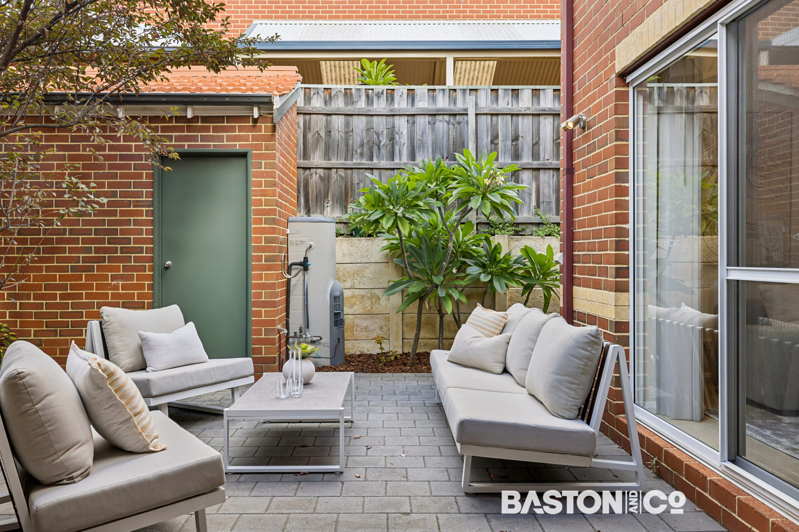 Across the road from Read Park, safe behind the automatic gate, the manicured gardens of this immaculately maintained townhouse complex exude a refined sense of calm.