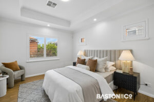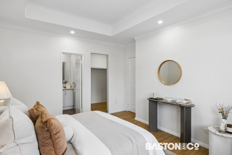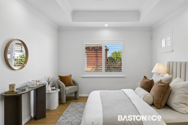 Upstairs there is a generous main bedroom, featuring a classic coffered ceiling, walk in robe, and ensuite with separate toilet.