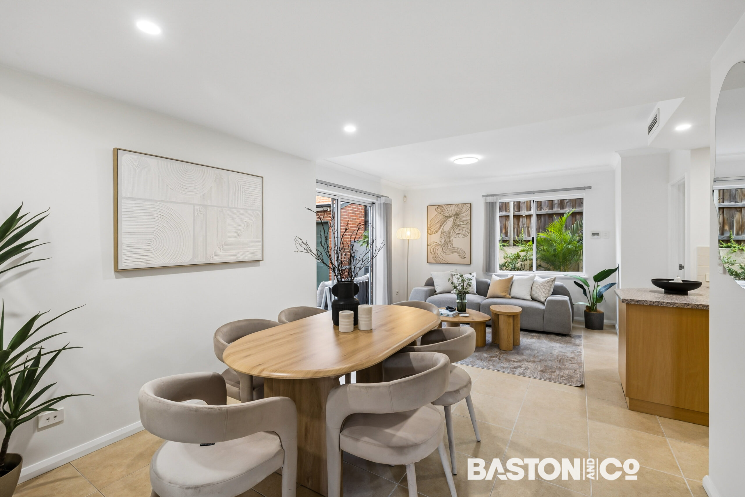 The versatile floor plan boasts room for two defined living spaces on the ground floor.